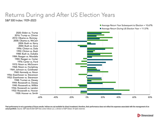 Figure 1. Returns During and After US Election Years, Dimensional.com.