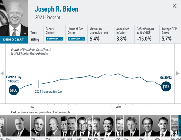 Overall, this data should serve as reassurance and a reminder that the President is just one of many factors that can impact markets. Others include interest rates, health crises, oil prices, natural disasters, tech advances, corporate activity, and congressional actions.